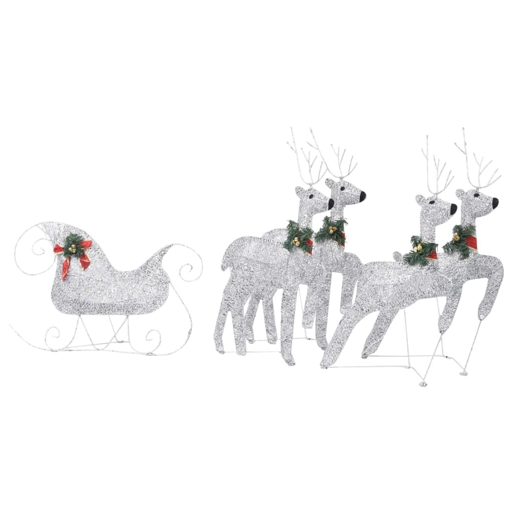 Reindeer and Sleigh Christmas Decoration Set of 4 Silver
